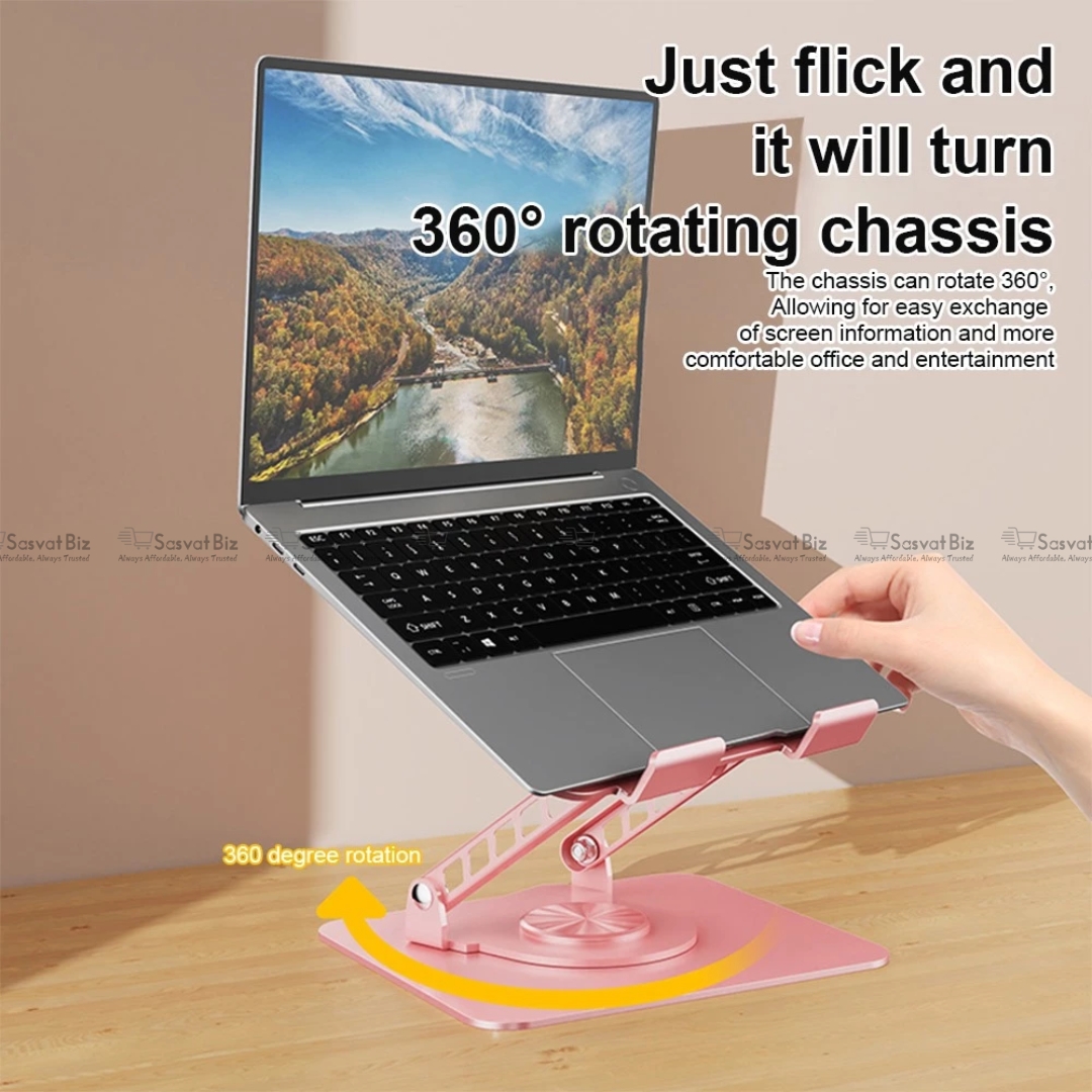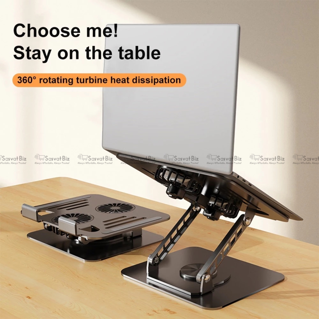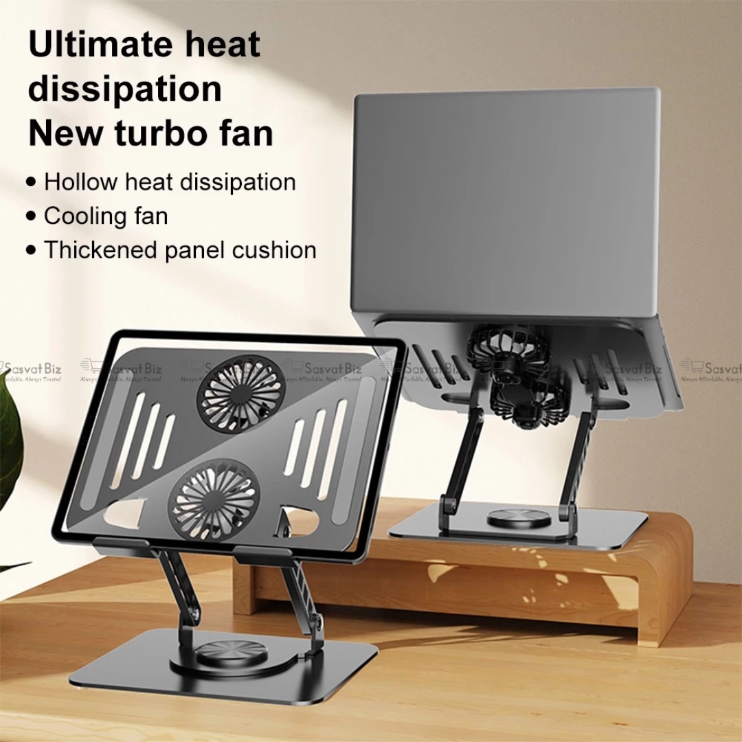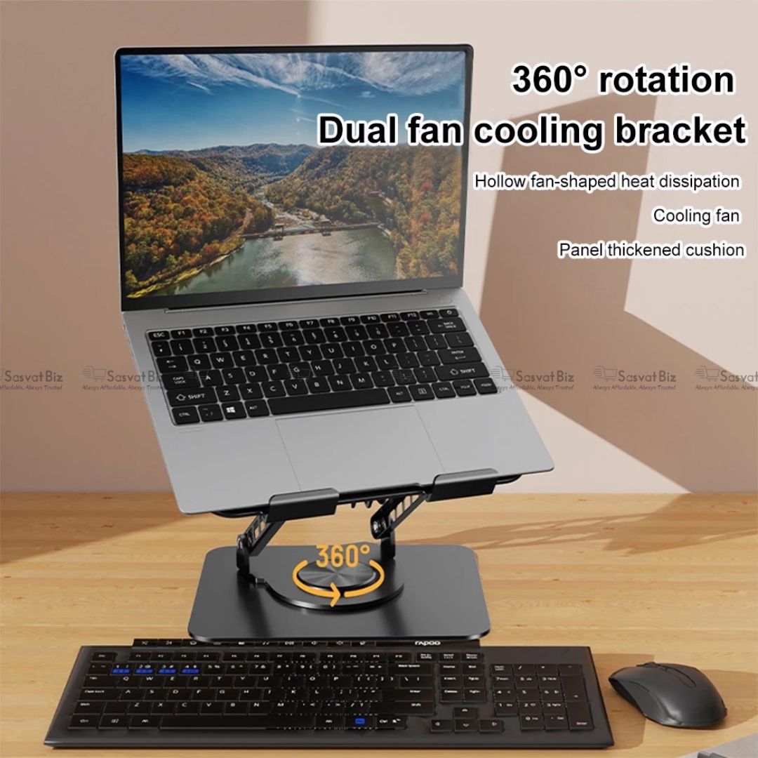 360° Rotating Laptop Stand with Dual Cooling Fans, Adjustable Aluminum Alloy Stand for 10-17.3 inch Laptops