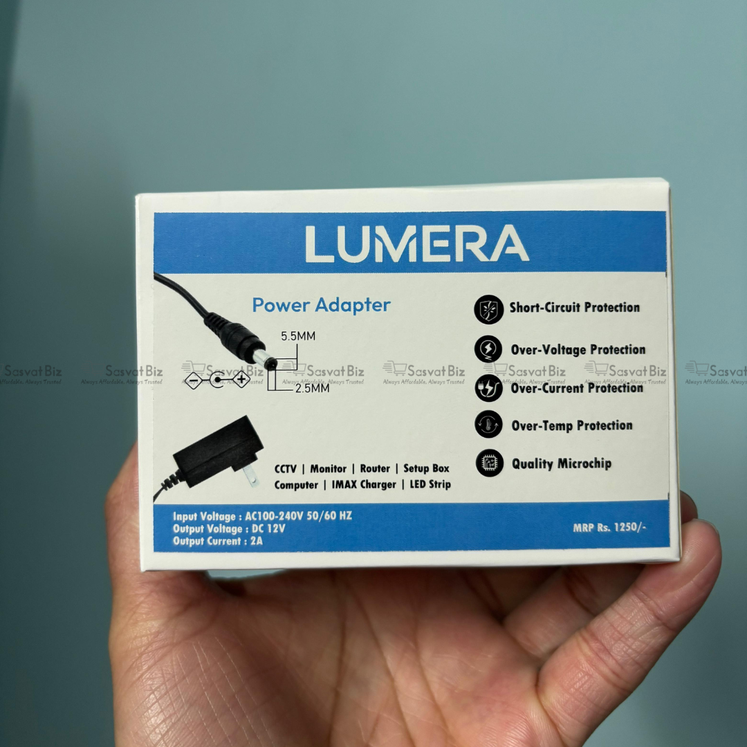 Lumera 12V 2A Universal AC/DC Power Adapter, 100–240V Input, 5.5mm x 2.5mm Barrel Plug
